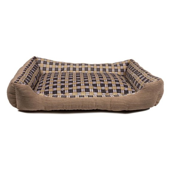 Miekkie legowisko w kształcie kanapy dla Twojego czworonożnego przyjaciela. Wykonane z połączenia sztruksu i kraciastej tkaniny.