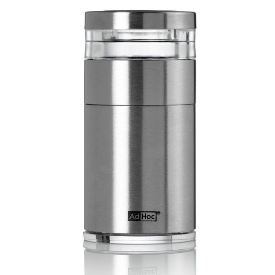 Jest to młynek w optymalnym i wygodnym rozmiarze, wyposażony w bardzo wydajne żarna CeraCut®, które są wolne od zapachów i smaków, a także są niezwykle odporne na korozje i zużycie. Młynek posiada mechanizm doboru grubości mielenia w pełnej skali od drobnego do grubego rozmiaru. Demontowana nakrywka umożliwia łatwe napełnienie młynka, a wąskie akrylowe okienko sprawia, że przyprawy są widoczne i jednocześnie nie wystawione na zbyt wiele światła. Na spodzie młynka zastosowano kapturek chroniący aromat przypraw oraz zapewniający czystość blatu. Nie należy myć w zmywarce. Produkt został zaprojektowany przez AdHoc Design Team. Materiał: stal nierdzewna, akryl. Wymiary: średnica - 4,5cm, wysokość - 9cm.