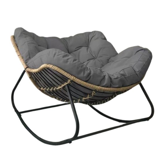 Stylowy fotel bujany wykonany z wysokiej jakości rattanu, idealny do wnętrz, które łączą naturalność z nowoczesnym designem. Miękka, szara poduszka zapewnia wyjątkowy komfort użytkowania, a solidna konstrukcja gwarantuje wytrzymałość. Doskonały wybór do salonu, sypialni, hotelu lub biura, a także jako elegancki akcent w przestrzeniach komercyjnych.