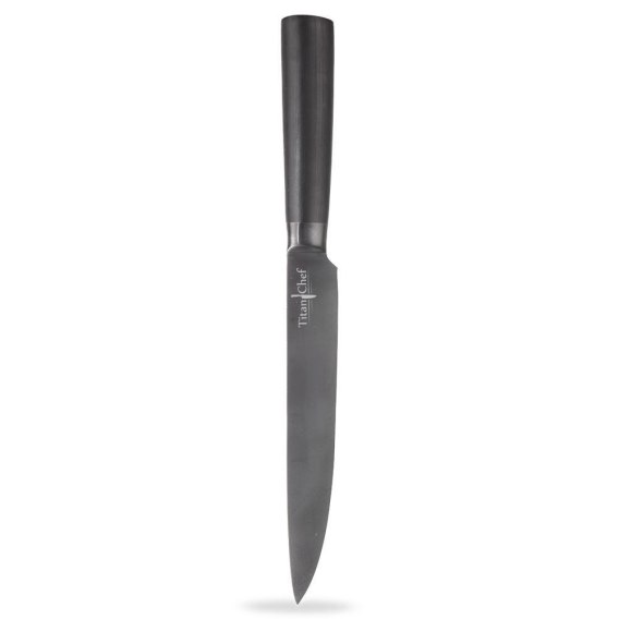 KUCHENNY - Wyjątkowy nóż kuchenny z serii noży TITAN CHEF. Nóż o uniwersalnym zastosowaniu. Długość ostrza 20,5 cm, a długość całkowita 33,5 cm.