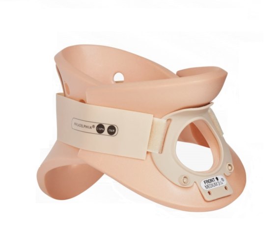 Kołnierz ortopedyczny z otworem tracheotomijnym Philadelphia® Tracheotomy Collar Kołnierz ortopedyczny z otworem tracheotomijnym Philadelphia to kołnierz stosowany w szpitalach i podczas rehabilitacji, zaprojektowany w celu utrzymania neutralnej pozycji odcinka szyjnego kręgosłupa po urazach szyi. Posiada duży otwór tracheotomijny, dzięki któremu możliwe jest monitorowanie pulsu szyjnego i wykonanie tracheotomii w nagłym wypadku. Sztywne wzmocnienie z tworzywa sztucznego, obejmujące część przednią i tylną, zapewnia ograniczoną możliwość poruszania się Kołnierz odciążający cały odcinek szyjny pozwala utrzymać neutralne ustawienie tego odcinka Odporność na działanie wody umożliwia kąpiele i terapię wodą Konfigurowalny projekt 2-częściowy Nie zawiera naturalnego lateksu; nietoksyczna i hipoalergiczna pianka Plastazote® redukuje podrażnienia skóry Nie pochłania promieniowania w związku z czym może być stosowana w środowisku promieniowania rentgenowskiego i tomografii komputerowej. Produkt bezpieczny w środowisku MR. Posiada duży otwór tracheotomijny Otwory wentylacyjne zmniejszają nagrzewanie i wilgoć WSKAZANIA DO UŻYCIA KOŁNIERZA ORTOPEDYCZNEGO Z OTWOREM TRACHEOTOMIJNYM: Konieczność unieruchomienia odcinka szyjnego kręgosłupa u pacjenta po urazie - Unieruchomienie przed operacją i po zabiegu chirurgicznym stabilizacji odcinka szyjnego kręgosłupa - Inne stany wymagające znacznego unieruchomienia odcinka szyjnego kręgosłupa Kołnierz ortopedyczny z otworem tracheotomijnym Philadelphia® Tracheotomy Collar występuję w 3 warianatch wysokości 6, 8 i 11 cm. Dostępne rozmiary: XS, S, M, L, XL Aby prawidłowo dobrać rozmiar należy zmierzyć obwód szyi: XS 48cm