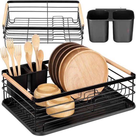 Ociekacz do naczyń Ergun to funkcjonalne i stylowe rozwiązanie dla każdej kuchni. Wykonany z trwałej stali malowanej proszkowo, zapewnia wytrzymałość i odporność na zarysowania. Jego elegancki, czarny matowy wygląd doskonale pasuje do nowoczesnych wnętrz. Rączki z drewna bambusowego dodają ekologicznego akcentu, a wyciągana tacka z tworzywa sztucznego ułatwia utrzymanie czystości. Zdejmowany pojemnik na sztućce jest praktyczny i ułatwia organizację. Ociekacz Ergun waży 1,4 kg, co czyni go stabilnym i łatwym do przenoszenia. Idealny dla tych, którzy cenią sobie połączenie funkcjonalności i nowoczesnego designu.