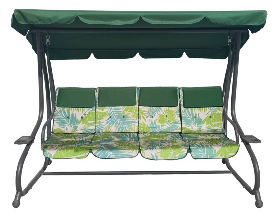 | Opis | Huśtawka ogrodowa z rozkładanym siedziskiem i regulacją daszka, zielona ze wzorem |