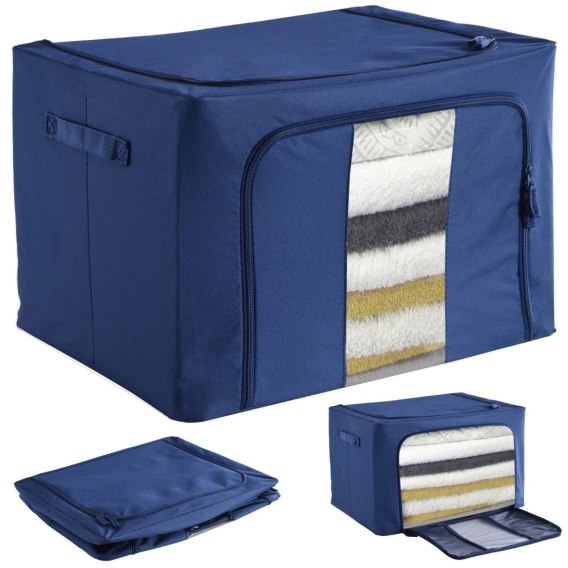 Organizer na pościel Evan to świetne rozwiązanie na zorganizowanie porządku w Twojej garderobie czy szafie. Doskonale sprawdzi się do przechowywania ręczników, pościeli i każdego rodzaju odzieży. Wykonany jest z materiałów najwyższej jakości, z zachowaniem dbałości o każdy detal. Organizer na odzież Evan posiada stalowy, solidny stelaż i usztywnienie na spodzie, dzięki czemu jest stabilny i wytrzymały, a ubrania chronione są przed zagnieceniami. Modułowa konstrukcja pozwala ustawiać kolejne organizery na sobie, dzięki czemu możemy tworzyć pionowe słupki wg własnych upodobań. Dodatkowo przednia ścianka posiada transparentne okienko, dzięki któremu szybko dostrzeżemy rzecz, której szukamy. Torba na ubrania Evan wykonana jest solidnego materiału Oxford 600D, dzięki czemu jest odporna na działanie wilgoci, chroni przed molami, kurzem, brudem i brzydkim zapachem. Evan to doskonały organizer na ubrania. Jest solidnie wykonany z wytrzymałego materiału, posiada stalowy stelaż, mocne zamki błyskawiczne, wygodne rączki do przenoszenia i okienko identyfikujące odzież. To praktyczne i estetyczne rozwiązanie do Twojej szafy. Dzięki dużej pojemności 60 litrów pojemnik jest w stanie zmieścić dużą ilość odzieży, ręczników czy kompletów pościeli.