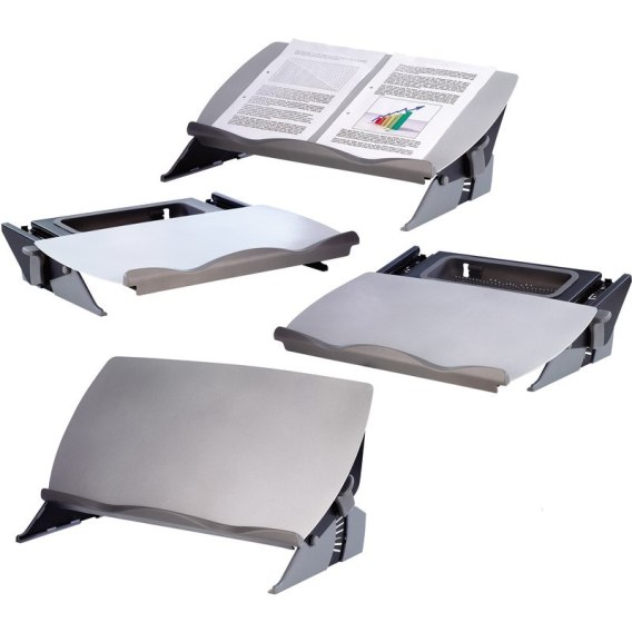 * Główna baza z możliwością zmiany kąta nachylenia umożliwia przechowywanie dokumentów i robienie odręcznych notatek w trakcie pracy bez zbędnych ruchów ciała.