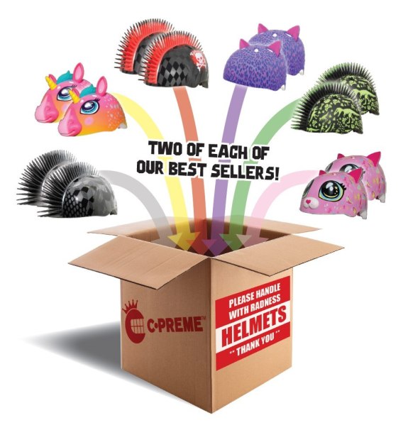 Jeśli wiesz, jak trudno jest nakłonić dziecko do noszenia kasku, to wiesz, dlaczego wynaleźliśmy kaski C-preme. C-preme łączy najnowszą technologię bezpieczeństwa kasków z naszymi ekskluzywnymi postaciami inspirowanymi zabawkami. Kaski C-preme to pierwsze kaski, które dziecko CHCE nosić, a rodzice będą szczęśliwi, wiedząc, że spełniają wszystkie wymagania bezpieczeństwa CPSC i ASTM! Podczas gdy inne firmy produkujące kaski stosują grafikę drukowaną na płasko, kaski Raskullz jako pierwsze wykorzystują technologię pełnego 3D, aby przyciągnąć wzrok dziecka. Raskullz zostały zaprojektowane tak, aby wyróżniać się w nijakiej branży kasków, będąc jednocześnie liderem technologii bezpieczeństwa kasków. W C-preme żyjemy według jednego prostego przekonania: chroń głowę - inspiruj wyobraźnię!