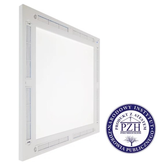 ASEPTYCZNY I ANTYWIRUSOWY PANEL LED Najlepszy na rynku antywirusowy i antybakteryjny panel LED wykorzystujący technologię NANOCARE. Powierzchnia klosza w połączeniu ze specjalistycznymi filtrami zapewnia długoterminową ochronę przed bakteriami, wirusami i grzybami w powietrzu. ASEPTICA ACTIV / nano dezaktywuje i hamuje wzrost wszystkich bakterii wirusów i grzybów, które dotkną powierzchni panelu lub przejdą przez filtry. Technologia NANOCARE zastosowana na powierzchni panela i wewnątrz filtrów skutecznie zapobiega rozprzestrzenianiu się chorób zakaźnych, oczyszcza powietrze i zapewnia zdrowe i bezpieczne środowisko. ASEPTICA ACTIV / nano jest oprawą niechemiczną, nietoksyczną i nie wymagającą żadnej konserwacji. W oprawie występują wielowarstwowe filtry których wymianę zaleca się 6 miesięcy. Dzięki hybrydowej konstrukcji łączy statyczne działanie wirusobójcze panela LED z aktywnym przyciąganiem zanieczyszczeń przechodzących przez wielopoziomowy system filtrów. Zainstalowane wewnątrz oprawy wentylatory HQ wywołują cyrkulację powietrza w chronionym pomieszczeniu wzmacniając i przyśpieszając przeciwwirusowe i przeciwbakteryjne działanie oprawy. Powierzchnia panela utrzymuje właściwości również gdy oprawa nie świeci. Wygodę obsługi oprawy ASEPTICA ACTIV / nano zapewnia ergonomiczny pilot umożliwiający niezależne sterowanie siłą cyrkulacji powietrza i natężeniem przyjemnego dla oka oświetlenia. TECHNOLOGIA OPTOELEKTRYCZNA Większość wirusów i bakterii zanieczyszczających powietrze w pomieszczeniach są małe i mobilne, co sprawia, że niezwykle trudno jest je złapać i przefiltrować. Zastosowanie technologii optoelektrycznej polimerowej powłoki plazmowej w połączeniu z wyjątkowym dyfuzorem i systemem filtrów powoduje, że oprawa ASEPTICA ACTIV / nano działa cały czas. Niezależnie od tego, czy włączasz, czy wyłączasz światło, oczyszcza ona powietrze w pomieszczeniu, pozwalając zawsze oddychać zdrowo. WŁAŚCIWOŚCI: BAKTERIOBÓJCZE WIRUSOBÓJCZE GRZYBOBÓJCZE ABSORBCJA FORMALDEHYDU FILTR PM2,5 FIRMY 3M CERTYFIKOWANA POWŁOKA NANOPROOF TECHNOLOGIA OPTOELEKTRYCZNA ZESTAW ZAWIERA: FILTRY PILOT WRAZ Z UCHWYTEM ŚCIENNYM INSTRUKCJĘ OBSŁUGI RAMKA DO MONTAŻU NATYNKOWEGO (dodatkowo płatna) LINKI DO MONTAŻU NATYNKOWEGO (dodatkowo płatne) ASEPTICA ACTIV / nano posiada atest Państwowego Zakładu Higienicznego. Uzyskanie atestu PZH oznacza brak szkodliwości urządzenia dla środowiska oraz przede wszystkim, dla jego użytkowników. Spełnia normy: PN-EN 60598-1:2015; PN-EN 62031|2008+A2|2015; PN-EN 62 722-1:2016; PN-EN 62 722-2-1|2016. Zasilacz wej. 90-264 V 50/60 Hz; wyj. 30-40V 900mA ściemnialny. Pomoc w monatżu dodatkowo płatna, Zapytaj na naszej infolini.