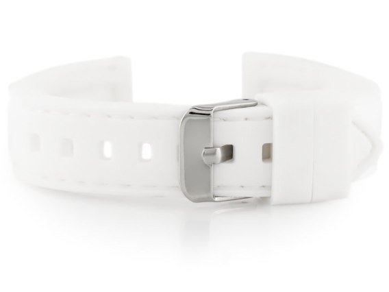 Gumowy pasek w kolorze białym z białymi przeszyciami.
