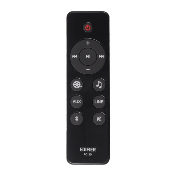 Już nie musisz za każdym razem wstawać z fotela, aby dostosować odtwarzanie do własnych potrzeb. Pilot jest kompatybilny z głośnikami Edifier D12 i umożliwia regulację głośności, pomijanie utworów, wyciszenie dźwięku oraz ustawienie odpowiedniego trybu (Movie, Music). Możesz także wybierać spośród różnych źródeł dźwięku - do Twojej dyspozycji są AUX, Line oraz Bluetooth.