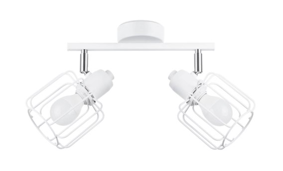 Źródło światła: E14, 2x max 10 W LED, ~230V, 50Hz, IP20, klasa ochronności IŹródło światła nie jest w komplecie. Wymiary: 27/17/19 cmWymiary klosza: 10/11 cmMateriał: stalKolor: biały