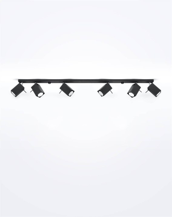 Źródło światła: GU10, 6x max 10W LED, ~230V, 50Hz, IP20, klasa ochronności IŹródło światła nie jest w komplecie.Wymiary: 118/6/16 cmMateriał: stalKolor: czarny