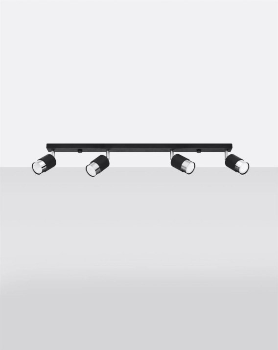 Źródło światła: GU10, 4x max 10W LED, ~230V, 50Hz, IP20, klasa ochronności IŹródło światła nie jest w komplecie.Wymiary: 81/5/18 cmMateriał: stalKolor: czarny/chrom