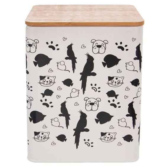 - SZCZELNY - Posiada bambusową pokrywę z silikonową uszczelką, co zapewnia szczelność. Dzięki zamknięciu zapachy z karmy nie będą przedostawać się na zewnątrz.