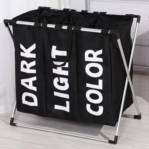 Kosz na pranie posiada 3 komory do segregacji. Każda z komór jest opisana i zamykana. Komory wykonane zostały z wodoodpornego materiału, a stelaż z trwałego aluminium. Konstrukcja kosza na pranie jest lekka i łatwa w przenoszeniu ze względu na składany stelaż. Kosza można używać bez stelaża dzięki prostemu montażowi na rzepy.