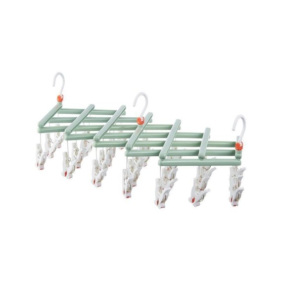 Praktyczny składany wieszak na ubrania z klipsami, 29 klipsów, zielony