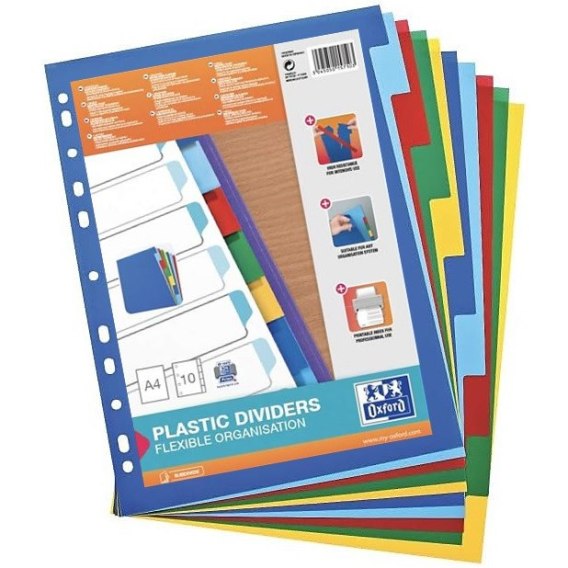 * Kolorowe przekładki wykonane z wytrzymałego polipropylenu odpornego na zniszczenie - doskonałe do organizowania dokumentów w segregatorze. Komplet zawiera 10 przekładek z niezadrukowanymi indeksami. Na pierwszej karcie umieszczono specjalne miejsca do opisu zawartości.