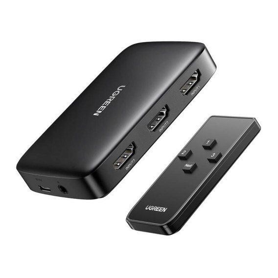 Produkt od Ugreen to rozdzielacz, który możesz obsługiwać bezprzewodowo za pomocą pilota dołączonego do zestawu. Dzięki kilku portom do CM332 podłączysz więcej urządzeń. Przełącznik obsługuje rozdzielczość 4K i nie wymaga dodatkowego źródła zasilania.