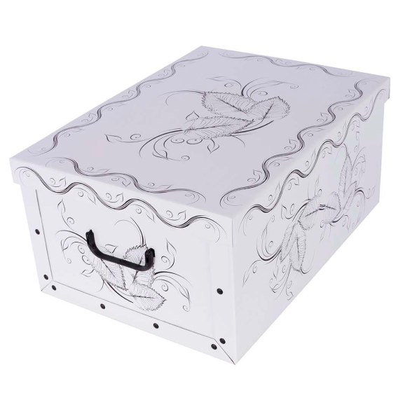 Pudełko kartonowe MAXI "Barokowa Elegancja" świetnie sprawdzi się do przechowywania ubrań, dokumentów, zabawek i akcesoriów. Idealne do garderoby, biura, pokoju dziecięcego oraz jako stylowe opakowanie prezentowe.