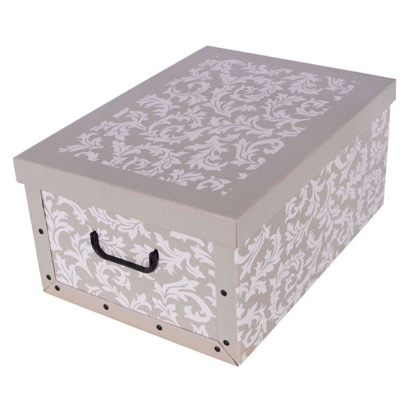 Pudełko kartonowe MAXI "Barok Prowansja" doskonale nadaje się do przechowywania ubrań, dokumentów, zabawek i akcesoriów. Świetnie sprawdzi się w garderobie, biurze, pokoju dziecięcym oraz jako eleganckie opakowanie na prezent.