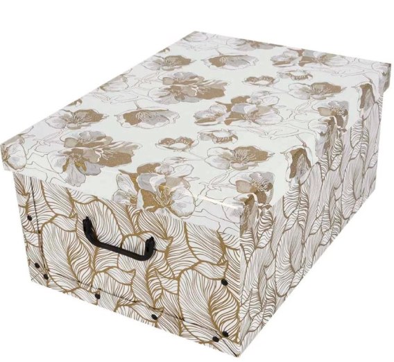 Pudełko kartonowe MAXI świetnie sprawdzi się do przechowywania ubrań, dokumentów, zabawek czy akcesoriów. Idealne do garderoby, biura, pokoju dziecięcego oraz jako estetyczne opakowanie na prezent.