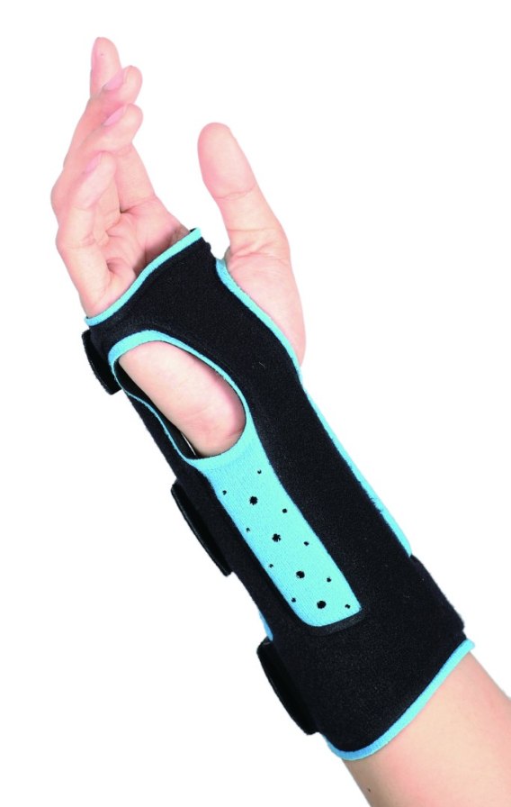 ZASTOSOWANIE: Produkt stosowany jest podczas zmian zwyrodnieniowych i stanów przeciążeniowych nadgarstka, podczas zespołów bólowych lub stanów zapalnych w przebiegu uszkodzeń nadgarstka, a także podczas ochrony nadgarstka w przypadku uprawiania sportów lub wykonywania zawodów związanych z ryzykiem powstania urazów (przeciążeń). CECHY PRODUKTU: konstrukcja ortezy jest lekka, otwarta i wykonana z pianki, nylonu, poliestru oraz lycry, jest dodatkowo wzmocniona dwiema fiszbinami, konstrukcja produktu zapewnia swobodne ruchy kciuka, profil ortezy zapewniający unieruchomienie stawu nadgarstkowego w pozycji funkcjonalnej, orteza posiada wyjmowalną anatomicznie wyprofilowaną stalkę, wersja na prawą i lewą rękę, kolor czarno-niebieski. ROZMIARY: Rozmiar S M L XL Obwód nadgarstka (cm) 13 - 15 15 - 18 18 - 20 20 - 22