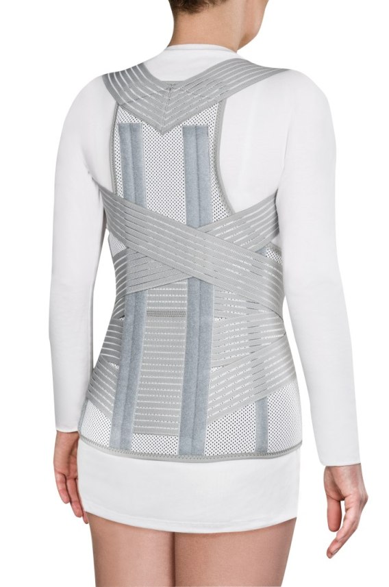 ZASTOSOWANIE: Orteza Premium TLS stosowana jest podczas wielopoziomowej dyskopatii, niestabilności kręgosłupa, choroby zwyrodnieniowa z zespołami bólowymi, dolegliwości bólowych w obszarze TLS o różnej etiologii, stabilizacji po zabiegach operacyjnych, doleczania pogorsetowego. CECHY PRODUKTU: orteza wykonana jest z elastycznej pianki laminowanej z jednej strony dzianiną siatkową z miękkich włókien poliamidowych typu Meryl oraz z drugiej strony dzianiną bawełnianą, elastyczny materiał nie ogranicza konwekcyjnego odprowadzania ciepła, odprowadza wilgoć z powierzchni skóry, cztery elastyczne stalki w części grzbietowej pozwalają na ograniczenie ruchomości i odciążenie elementów mięśniowo-więzadłowych oraz na dopasowanie się ortezy do pacjenta, dwie dodatkowe elastyczne stalki w części LS wzmacniają siłę stabilizacji tego odcinka, zastosowanie czterech tworzywowych fiszbin w części brzusznej wspomaga stabilizację odcinka lędźwiowo-krzyżowego, dodatkowe taśmy naramienne wspomagają korekcję i utrzymanie prawidłowej postawy ciała, system taśm dociągowych zapewnia możliwość regulacji siły stabilizacji, kolor jasnoszary. ROZMIARY: Rozmiar S M L XL XXL Obwód pasa (cm) 85 - 95 95 - 105 105 - 115 115 - 125 125 - 135