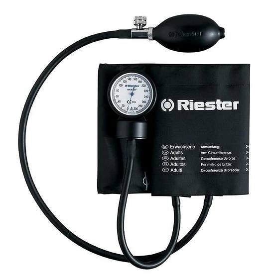 Ciśnieniomierz zegarowy Exacta Ciśnieniomierz zegarowy dwuwężykowy z możliwością zamocowania manometru bezpośrednio na mankiecie,co znacznie ułatwia wykonanie pomiaru. Manometr w tym modelu charakteryzuje się niewielkimi wymiarami, a co za tym idzie jego waga jest niewielka. Mocowanie manometru wykonano z bardzo wytrzymałego metalu. Skala manometru wykonana jest w kontrastowych kolorach, dzięki czemu jest ona bardzo czytelna. Główne cechy ciśnieniomierza Exacta Precyzyjny, niewielkich rozmiarów, uchwyt mocujący manometr do mankietu wykonany ze stali nierdzewnej, chromowany zawór spustowy wyposażony w system antykurzowy, mikrofiltry zabezpieczające system pomiarowy, membrana specjalnie utwardzana berylem i miedzią, nie podlegająca procesowi starzenia, wytrzymałość membrany testowana do 600 mm Hg, liniowa skala średnicy 49 mm, znakowana od 0 do 300 mm Hg, z podziałką co 2 mm, dostępny z szeroką gamą mankietów dwuwężykowych, całość w winylowym etui, 2 lata gwarancji.