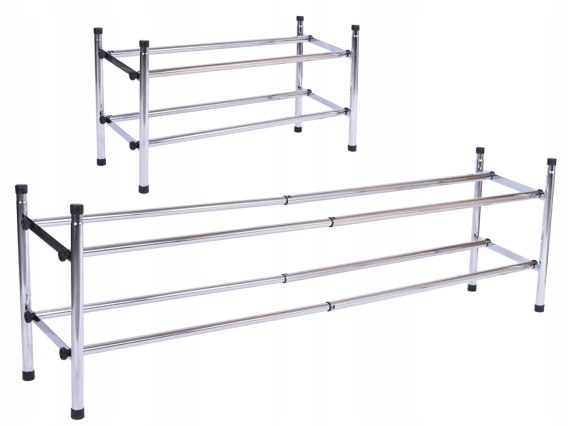 Praktyczna, rozkładana, modułowa półka na buty. Wykonana z metalu. Kolor czarny półmat. Regał składa się z dwóch modułów. Mozna używac ich osobno w dwóch pomieszczeniach lub złożyć razem w jeden wyższy mebel.