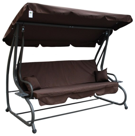 | Opis | Huśtawka ogrodowa z rozkładanym siedziskiem i regulacją daszka, ciemny brąz [8011 NEW CB] |