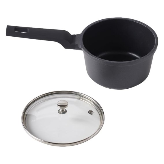 Rondel z przykrywką o średnicy 14cm do sosów i nie tylko. Garnek wykonany z odlewu aluminiowego, który zapewnia równomierne rozprowadzenie ciepła, jest pokryty wewnątrz podwójną powłoką nieprzywierająca. Dno ma strukturę plastra miodu. Rondel nadaje się na wszystkie płyty grzewcze w tym indukcję. Rączka pokryta jest tworzywem typu soft touch. Uwagi dotyczące użytkowania. Przed pierwszym użyciem należy usunąć etykiety i umyć naczynie ciepłą wodą z dodatkiem łagodnego detergentu a następnie dokładnie osuszyć. Przed przystąpieniem do czyszczenia garnek powinien ostygnąć, w przeciwnym razie może dojść do złuszczania powłoki. Rondelka nie należy myć w zmywarce, tylko ręcznie. Do mycia zleca się stosowanie łagodnych detergentów i miękkich, nylonowych zmywaków. Po umyciu naczynie należy dokładnie osuszyć. W przypadku przywarcia resztek potraw przed przystąpieniem do czyszczenia należy garnek zalać na kilka minut w ciepłą wodą. W kontakcie z naczyniem należy używać drewnianych lub silikonowych szpatuł. Używanie metalowych i ostrych szpatułek może spowodować uszkodzenie powłoki, co nie podlega gwarancji. Należy również zachować uwagę przy przechowywaniu. Mycie rondla zmywarce może prowadzić do uszkodzenia powłoki. Przybliżone wymiary: wysokość rondla bez pokrywki: 8cm, - wysokość rondla z pokrywką: 11,5cm, - średnica góra bez rączki: 15cm, - średnica góra z rączką: 29cm, - średnica wewnętrzna góra: 14cm, - średnica dół: 10cm. Przybliżone wymiary brutto: - wysokość: 9,5cm, - długość: 29cm, - szerokość: 15,5cm. Przybliżona waga brutto: 0,616kg. Opakowanie: foliowa torba, kartonowa etykieta.