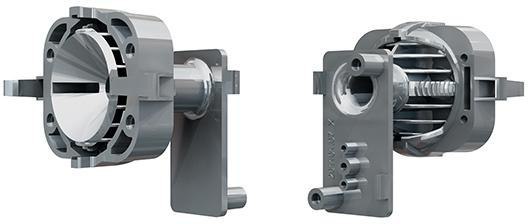 - BRACKET E-5 GY montowany jest na korpusie BRACKET E-1 (GY). Do uchwytu montowana jest wkładka BRACKET E-2B (GY) oraz czujnik sabotażowy BRACKET E-6