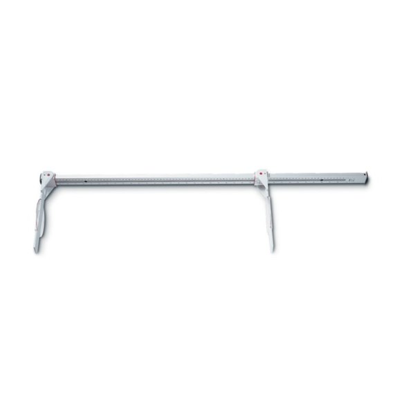 Do precyzyjnego pomiaru leżącego niemowlęcia.Wzrostomierz można na stałe przykręcić do przewijaka, zamontować na ścianie lub korzystać z niego w formie przenośnej. Duże ograniczniki głowy i stóp umożliwiają pomiar długości niemowlęcia. Składane suwaki. Wykoanany z aluminium.