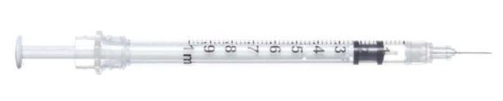 SOL-CARE 1ml 25G 5/8" 0,6x16 mm Strzykawka bezpieczna do tuberkuliny z igłą, 100 szt.