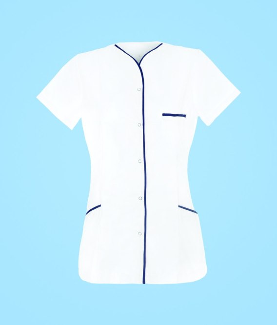 Damska tunika medyczna z granatową lamówką. Tunika wyposażona w trzy kieszenie. Krótki rękaw. Tunika jest taliowana dzięki czemu dopasowuje się do sylwetki. Zapinana z przodu na napy. Skład materiału: 65% poliester, 35% bawełna Dostępne rozmiary: XXS - 3XL XXS XS S M L XL 2XL 3XL biust 80 84 88 92 96 100 104 110 talia 62 66 70 74 78 82 86 92 biodra 86 90 94 98 102 106 110 126 * tabela rozmiarów przedstawia rzeczywisty odzieży