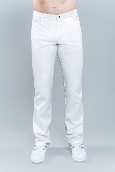 STELO ROZM. 46 Spodnie medyczne męskie białe, krój jeansowy, HA76002/WHTH/46