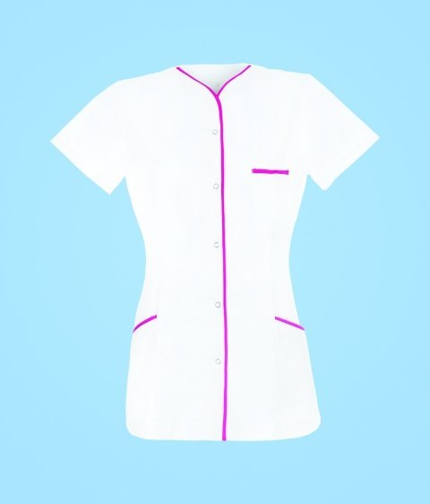 STELO ROZM. M Tunika medyczna rozpinana z lamówką różową damska, TO88024/WHTT/M