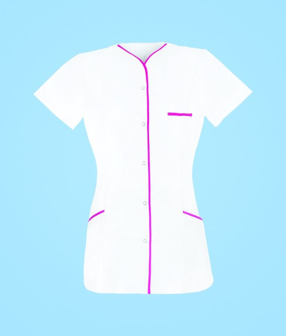 STELO ROZM. XXS Tunika medyczna rozpinana, lamówka różowa, 88024/WHTT/XXS