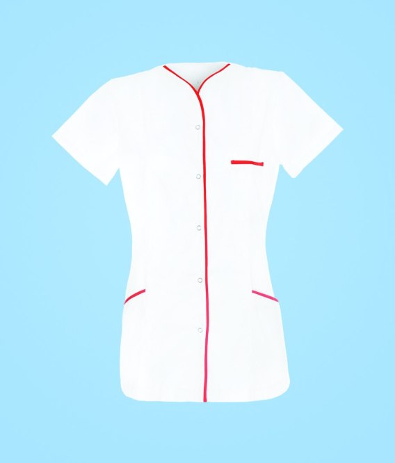 STELO ROZM. XXXL Tunika medyczna rozpinana, czerwona lamówka, 88023/WHTT/XXXL
