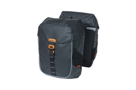 Sakwa miejska podwójna BASIL MILES TARPAULIN DOUBLE PANNIER BAG MIK 34L, MIK System (ready to go), 100% wodoodporna black orange