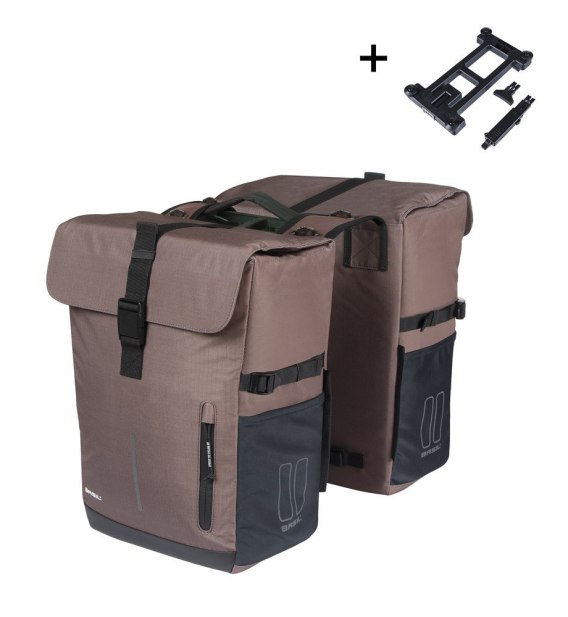 Sakwa podwójna BASIL MOVE DOUBLE BICYCLE BAG, MIK z adapterem do mocowania (ready to go), 30L, Wodoodporna, Brown (NEW)