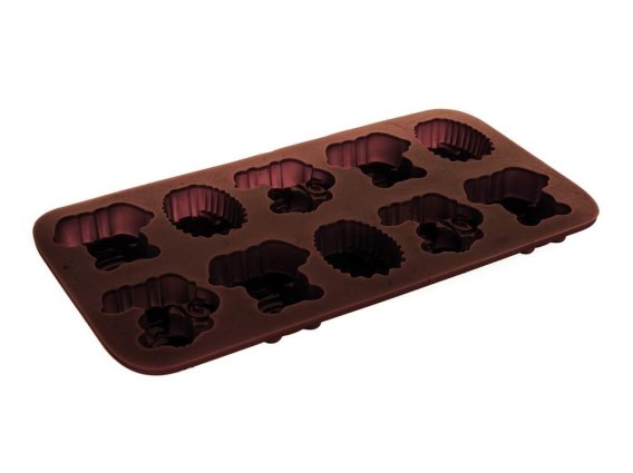 Silikonowe formy do czekolady - zwierzątka CULINARIA Brown, wymiary: 20,3 x 10,6 x 1,5 cm. Forma jest żaroodporna (do 240 °C), nie pochłania smaków ani zapachów żywności, łatwa w utrzymaniu (można myć w zmywarce do naczyń). Silikon jest bardzo popularnym materiałem, który ze względu na swoje wyjątkowe właściwości, znalazł zastosowanie także w kuchni. Produkują się z niego różnego rodzaju formy do pieczenia, wałki i wałeczki do ciasta, pędzelki do smarowania, różne rodzaje naczyń kuchennych i wiele innych produktów.