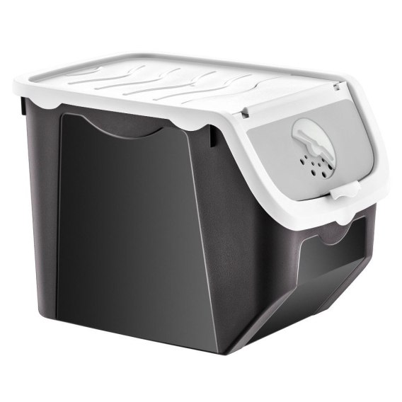 Pojemnik na owoce i warzywa o wymiarach 30 x 23,5 x 23,5 cm i pojemności 12 litrów. Pojemnik wykonany z wysokiej jakości tworzywa w kolorze czarnym a pokrywka w kolorze białym. Posiada regulowaną wentylację, dzięki czemu owoce i warzywa zachowają dłużej swoją świeżość. Wygodny w użytkowaniu dzięki otwieranej pokrywie na klips. Można z łatwością zarówno wyciągnąć jak i włożyć odpowiednie warzywa. Pojemnik możemy przechowywać w zamrażarce. W łatwy sposób go wyczyścimy, gdyż nadaje się do mycia w zmywarce do naczyń.Oryginalny produkt czeskiej marki Orion. Wyprodukowano zgodnie z europejskimi standardami.