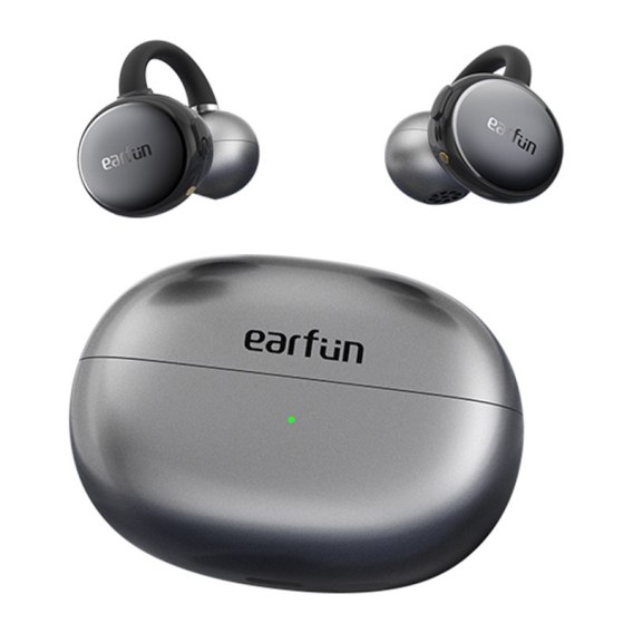 EarFun Clip to otwarte słuchawki typu Clip-On, które dzięki 10,8-milimetrowym przetwornikom z włókna węglowego, technologii BassSurge i obsłudze LDAC z certyfikacją Hi-Res Audio Wireless oferują wysoką jakość dźwięku podczas codziennego słuchania i intensywnych treningów. Bluetooth 6.0 zapewnia szybkie i stabilne połączenie, a klasa szczelności IP55 sprawia, że nie musisz obawiać się deszczu. Do tego dochodzi czas pracy do około 10 godzin (lub do 40 godzin z etui) i szerokie możliwości personalizacji w aplikacji EarFun Audio.