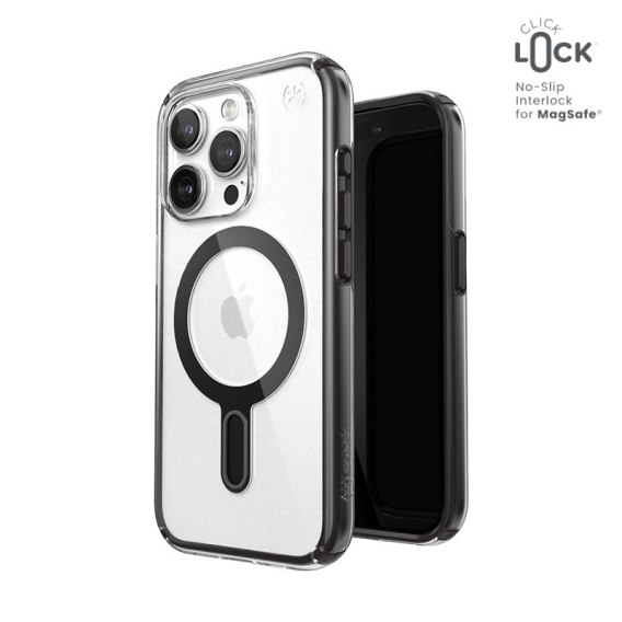 Speck Presidio® Perfect-Clear MagSafe® z technologią antypoślizgową ClickLock™ Interlock to przezroczyste etui z wbudowanym magnesem, kompatybilnym z akcesoriami Apple MagSafe®.