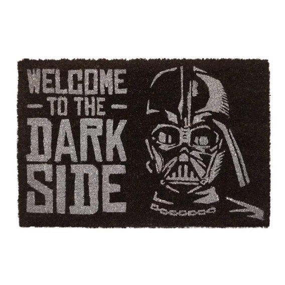 Oryginalny design wycieraczki przedstawiający ikoniczne elementy wszechświata Star Wars, w tym napis "Welcome to the Darkside" oraz podobiznę Lorda Sithów, nie tylko przyciąga wzrok, ale także zapewnia doskonałą funkcjonalność. Dzięki antypoślizgowej powierzchni i wymiarom 40 x 60 cm, wycieraczka idealnie sprawdzi się przed Twoimi drzwiami. Teraz możesz przyjmować swoich gości w mrocznym i epickim stylu, charakterystycznym dla tej kultowej sagi.
