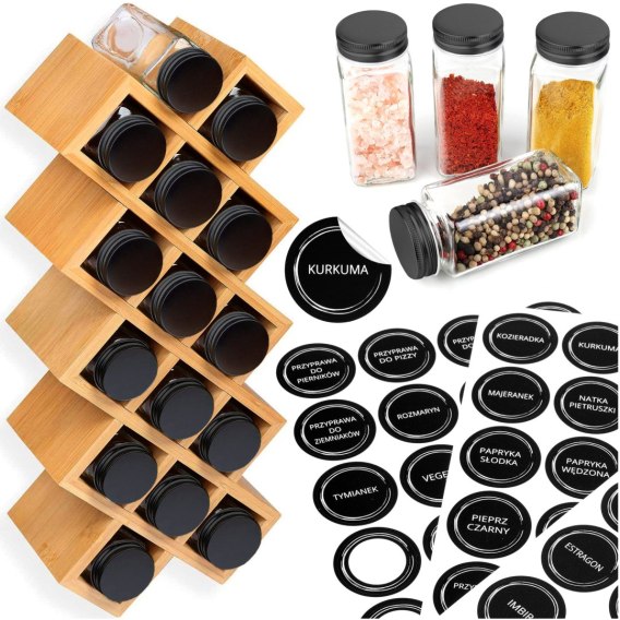 Dzięki 18 szklanym słoikom, które są wykonane z grubego i trwałego szkła, możesz trzymać wszystkie swoje ulubione przyprawy w jednym miejscu, co ułatwi Ci korzystanie z nich podczas gotowania. Słoiki są łatwe w czyszczeniu i mają przezroczyste ścianki, co umożliwia łatwe zobaczenie zawartości i ułatwia znalezienie potrzebnej przyprawy.