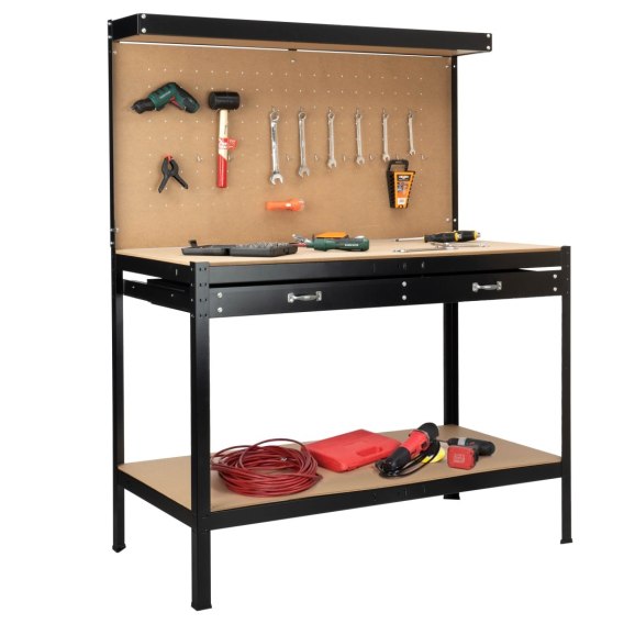 Warsztatowy stół Horten to wytrzymały, funkcjonalny i ergonomiczny mebel, idealny dla każdego majsterkowicza i hobbysty DIY. Dostępny w najniższej cenie bezpośrednio od producenta. Stół wykonano z proszkowo malowanej stali oraz grubych płyt MDF, co gwarantuje jego trwałość, solidność i długowieczność. Kluczowe elementy tego stołu warsztatowego, takie jak wzmocniona konstrukcja, przestronne szuflady na narzędzia, perforowana tablica narzędziowa, blat roboczy oraz uchwyty na narzędzia, zapewniają komfort i doskonałą organizację pracy w każdym warsztacie. To niezbędny element wyposażenia dla każdego, kto potrzebuje praktycznego i niezawodnego stołu roboczego.