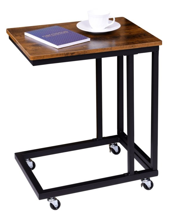Stolik loftowy Meren to idealne połączenie stylu retro i nowoczesności. Meren przydaje się w każdej sytuacji, jako stolik nocny czy kawowy, w biurze jako dodatkowy blat na dokumenty czy urządzenia. Metalowa rama łączy się z blatem z płyty laminowanej w kolorze postarzanego dębu, co stanowi ciekawy element dekoracyjny w salonie, korytarzu, biurze i nie tylko. Jest bardzo łatwy w montażu a dzięki czterem gumowym kółkom, bardzo mobilny i cichy przy przesuwaniu. Bezproblemowo przemieścimy go z miejsca na miejsce lub przysuniemy do łóżka czy sofy. Dwa kółka wyposażone są w hamulce umożliwiające ich zablokowanie. Jeśli potrzebujemy go w danej przestrzeni na stałe, wystarczy użyć płaskich regulowanych nóżek dołączonych do zestawu. Dzięki nim można także łatwo wypoziomować stolik. W zestawie instrukcja oraz zestaw montażowy, który umożliwia błyskawiczne skręcenie stolika. Stolik świetnie pasuje do wnętrz zaaranżowanych w stylu nowoczesnym i loftowym