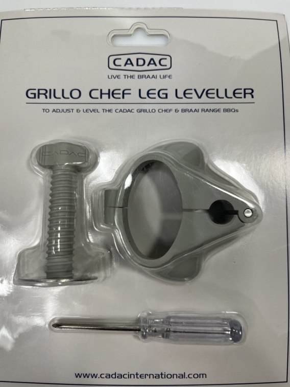 Dzięki tej poręcznej regulowanej stopce możesz w jednej chwili wypoziomować Grillo Chef. W ten sposób grill pozostaje stabilniejszy na powierzchni i można bezpiecznie grillować. Możesz również używać tej regulowanej nogi do wszystkich grillów z serii Braai.