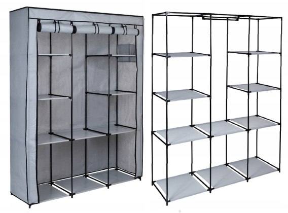 Lekkie szafy tekstylne to proste i ekonomiczne rozwiązanie problemu przechowywania odzieży. Szafy mają metalowy stelaż z łącznikami z tworzywa sztucznego, są proste i szybkie w montażu oraz dostępne w wielu modnych kolorach i wzorach. Materiałowa garderoba sprawdzi się też u osób często zmieniających miejsce zamieszkania - składa się ją w kilka minut. Dzięki zamkom błyskawicznym na froncie szafy, poszczególne części można otwierać i zamykać niezależnie.